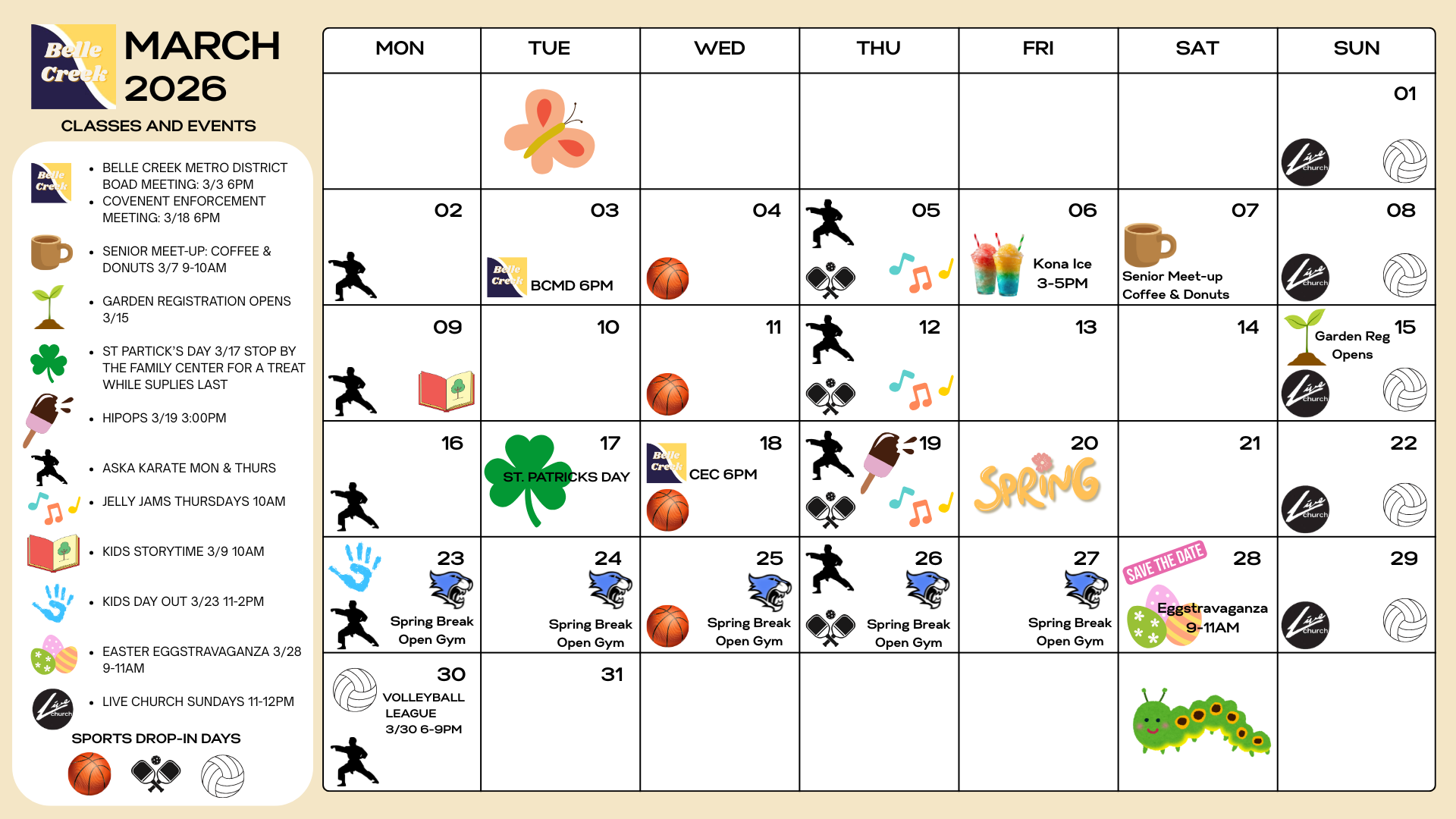 Belle Creek residents get first dibs, so sign up your team or sign up as a free agent to be placed on a team 👇
